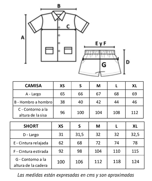 Conjunto de pijama: Camisa de manga corta con vivo blanco en bolsillo y mangas y botones de nacar blanco + short con vivo blanco.