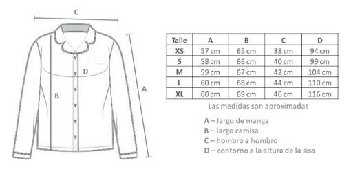 Acá te mostramos la tabla de medidas de la prenda (lo ideal es compararla con algo similar que tengas en uso)