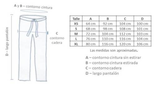 Acá te mostramos la tabla de medidas de la prenda (lo ideal es compararla con algo similar que tengas en uso)